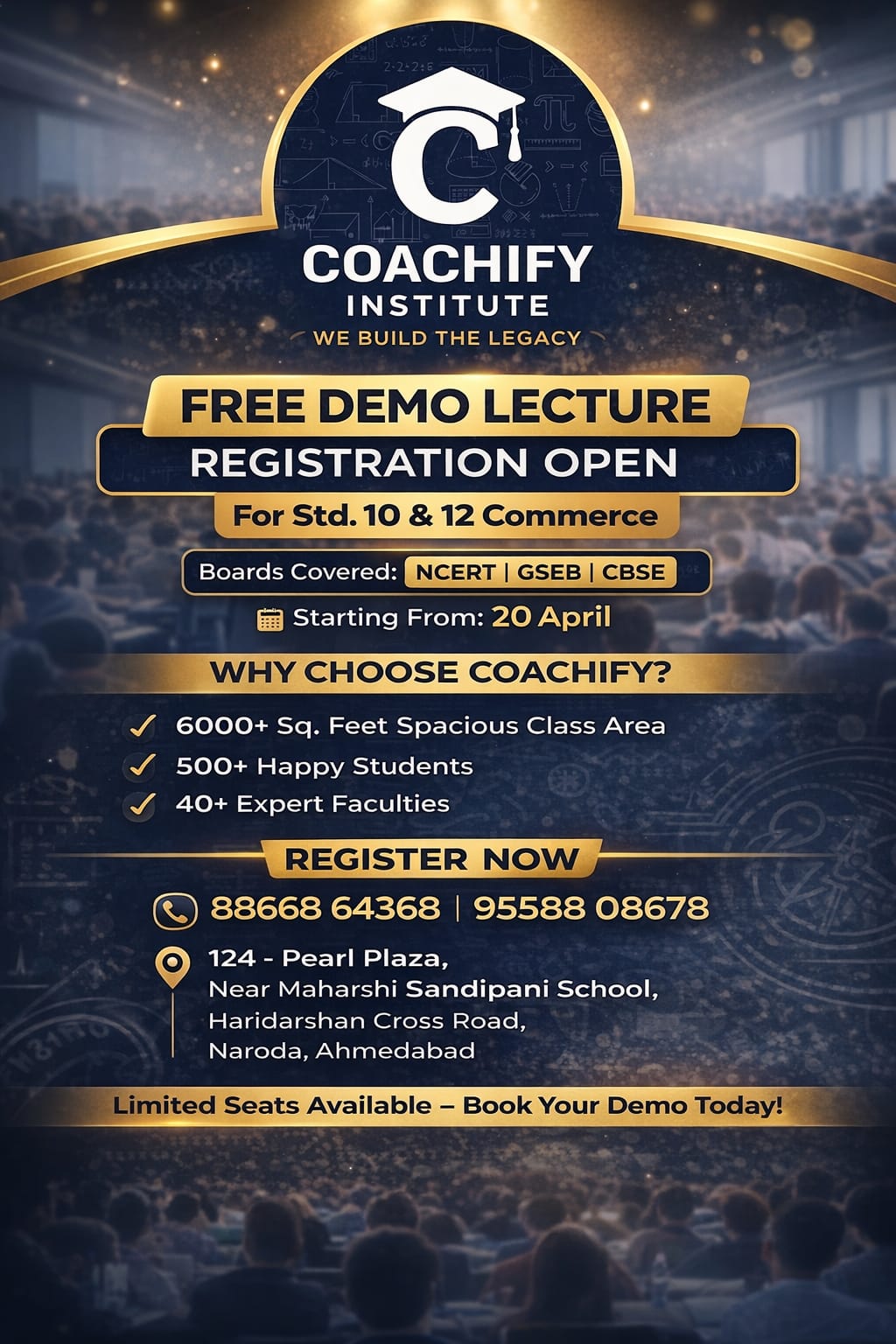3 Coachify Institute provides expert coaching for students from Class 7 to 12 in Science and Commerce streams, covering both CBSE and GSEB (Gujarat Board) curricula.